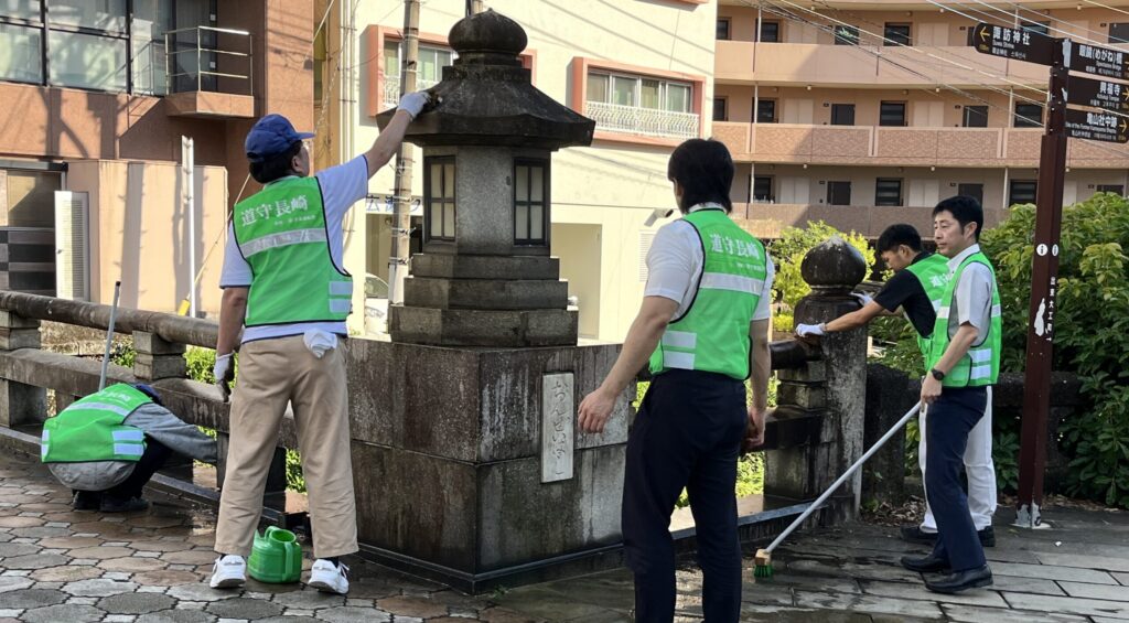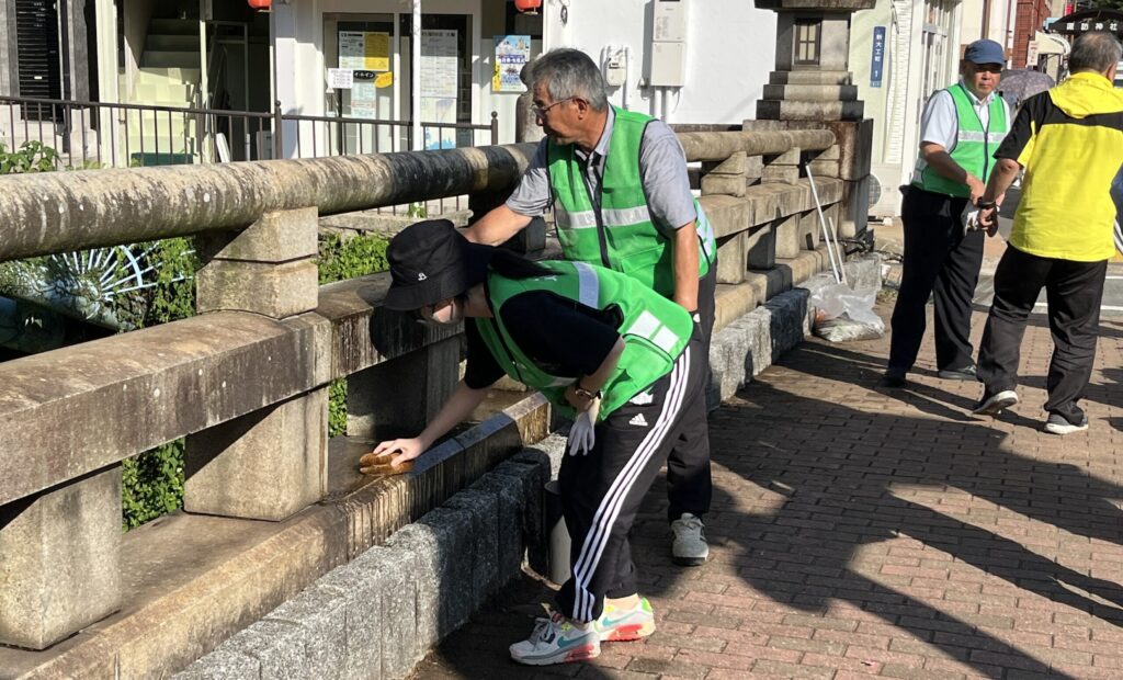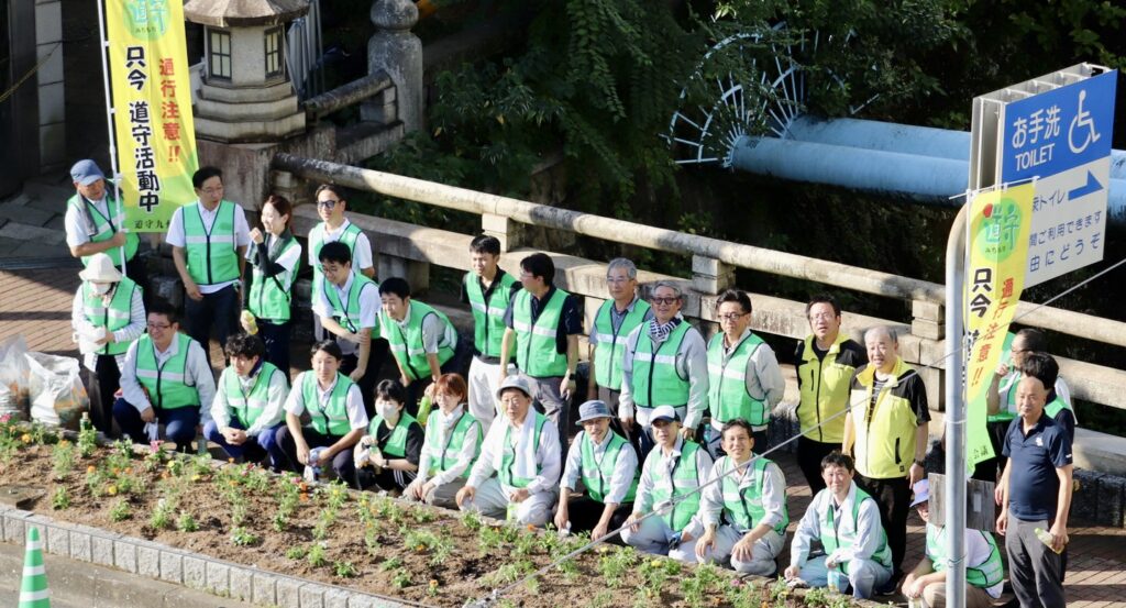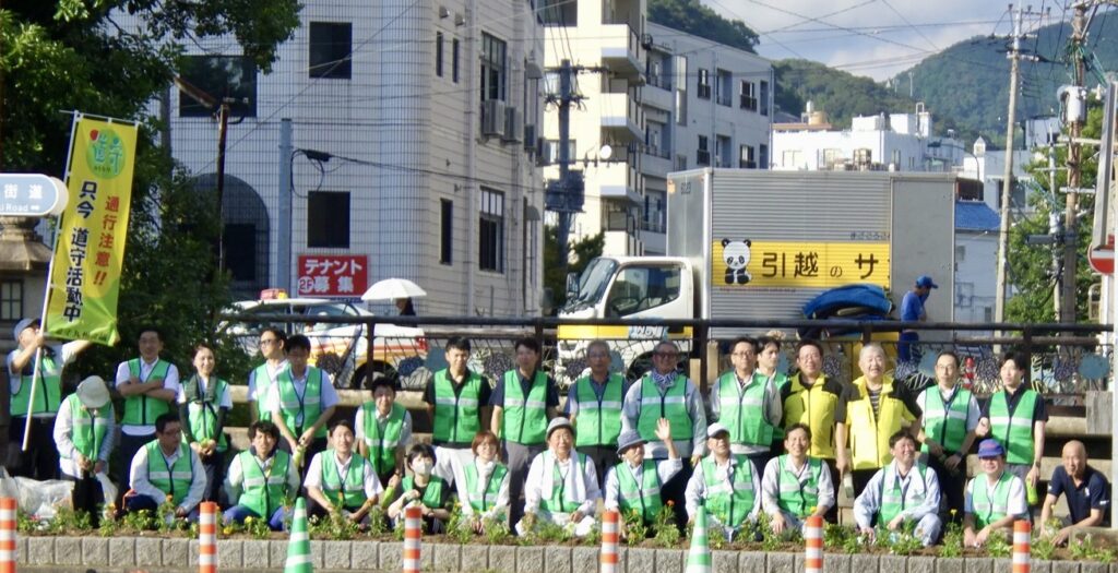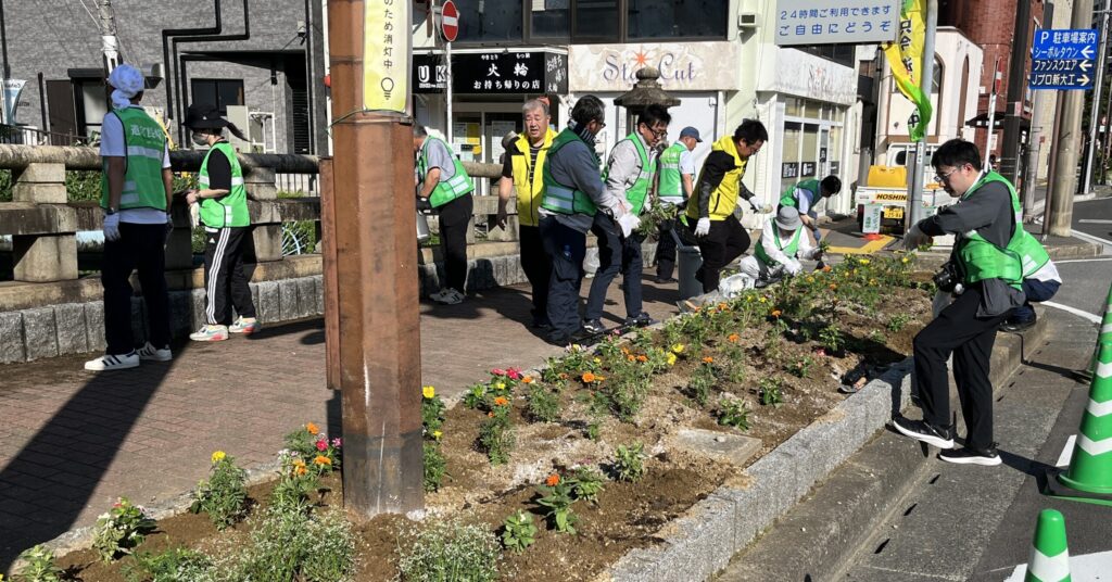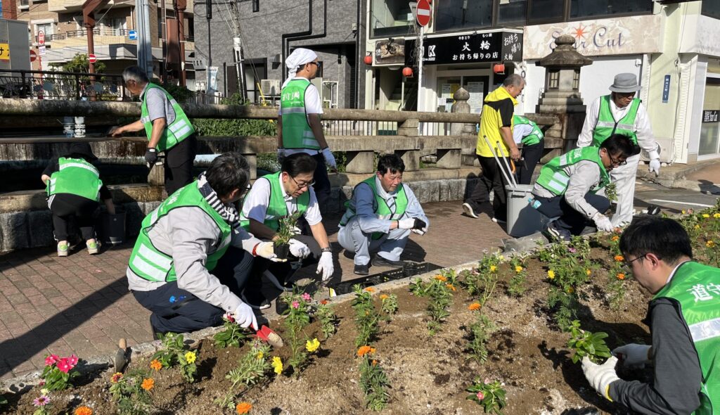 長崎くんち前の馬町花壇の花植えと鎮西橋の橋磨き活動が行われました